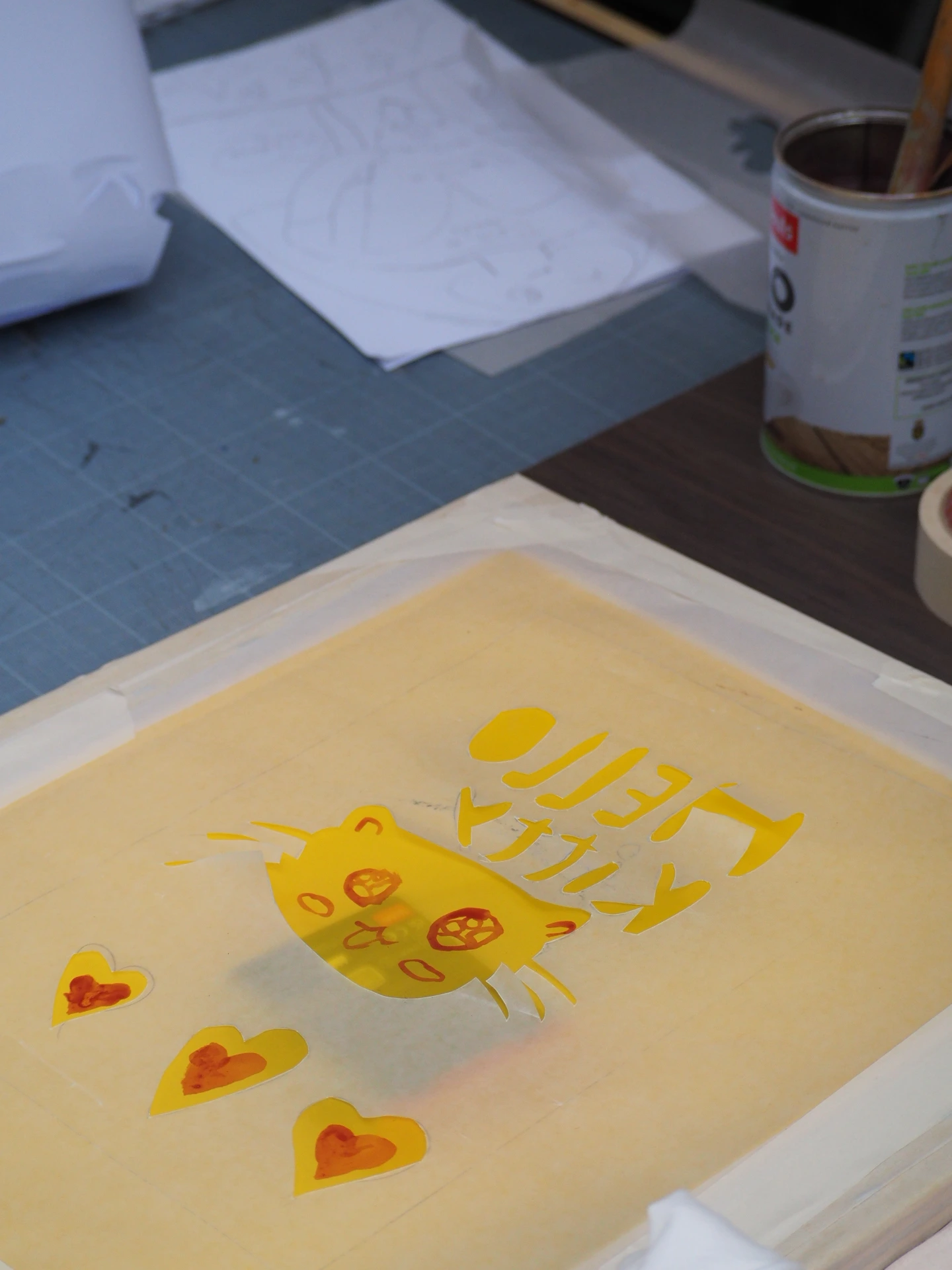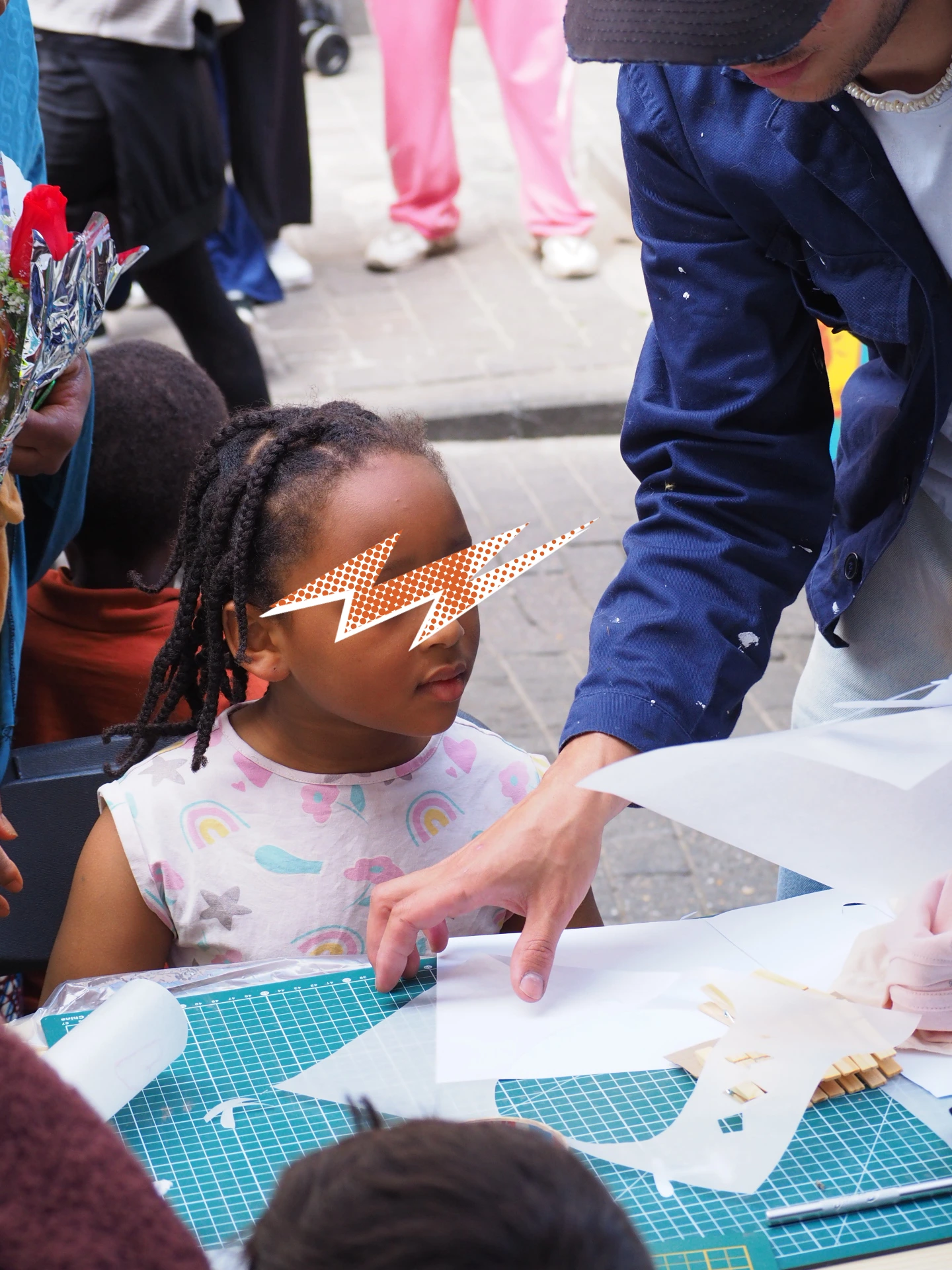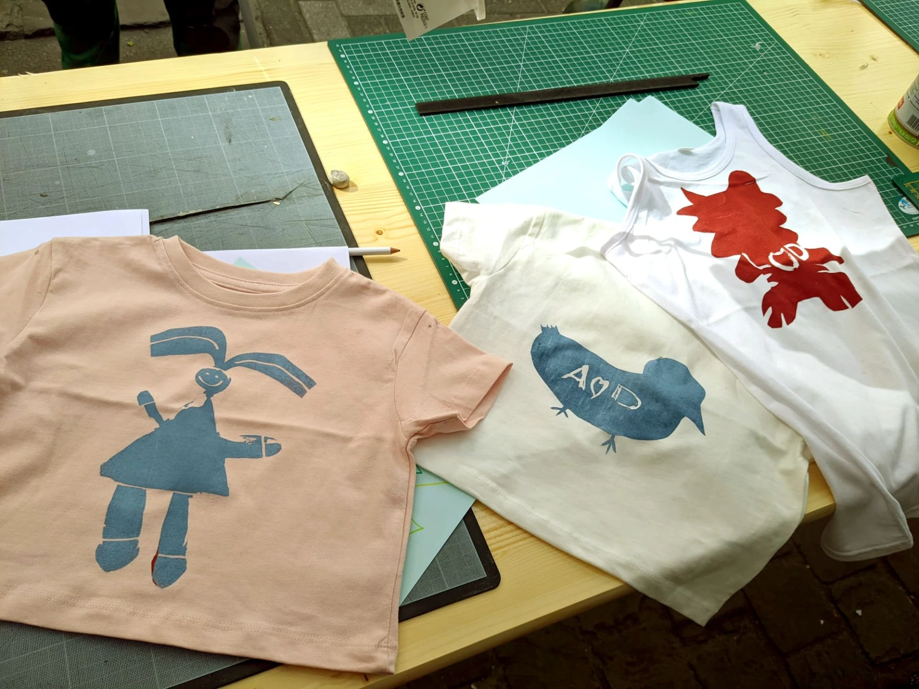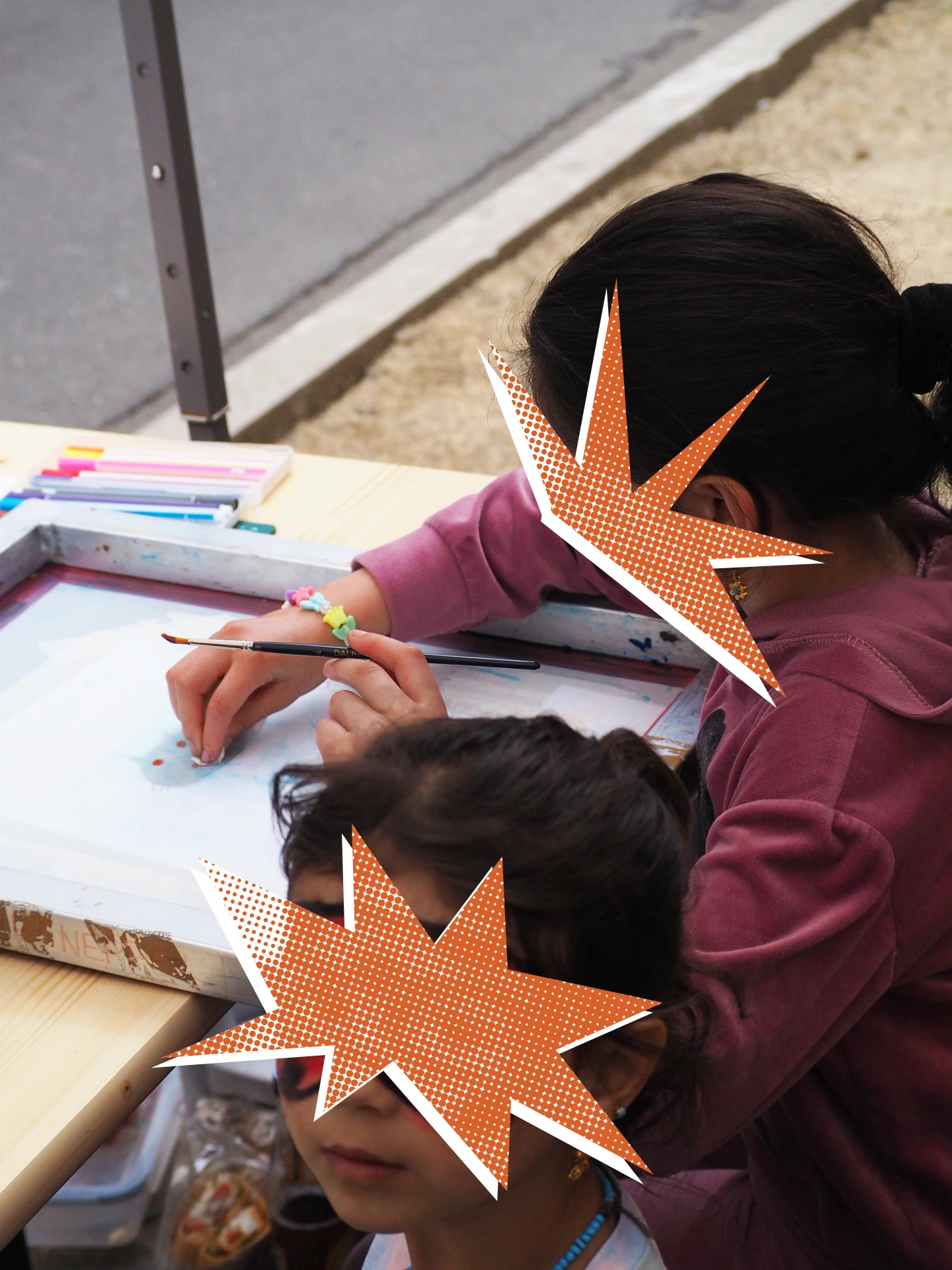 Brabant-Verte 2025, la Maison des Parents nous a invité à tenir un atelier de sérigraphie dans la rue ! Pour s’adapter à un public enfantin et à une pratique extérieure, le processus traditionnel a été abandonné au profit d'une pratique par découpe de papier. Les mini-artistes ont dessiné leurs visuels sur une page de calque avant de la découper, la coller sur un de nos cadres de sérigraphie maison, puis d'ajouter quelques détails au pinceau. Ils ont pu en suite l'imprimer sur des vêtements pour repartir avec. (Tout manquement de leur part aux droits d'auteurs est purement innocente.)